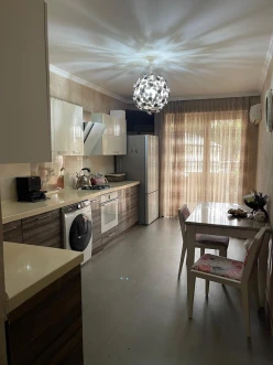 Heyder Eliyev prospektine, Kosmos restoranina,Tecili Yardima yaxin. 19/2ci mertebesi 3 otaqli menzil,sahesi 135 kv metr. Qaz,kombi istilik,heyeti genis,ela temirli menzil.