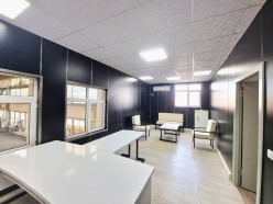 Birinci ofis binası 3 yeni təmirli otaq, mətbəx, yeməkxana, 3 hamam tualetdən ibatədir. İstilik sistemi “Kombi”, split kondisionerlər.